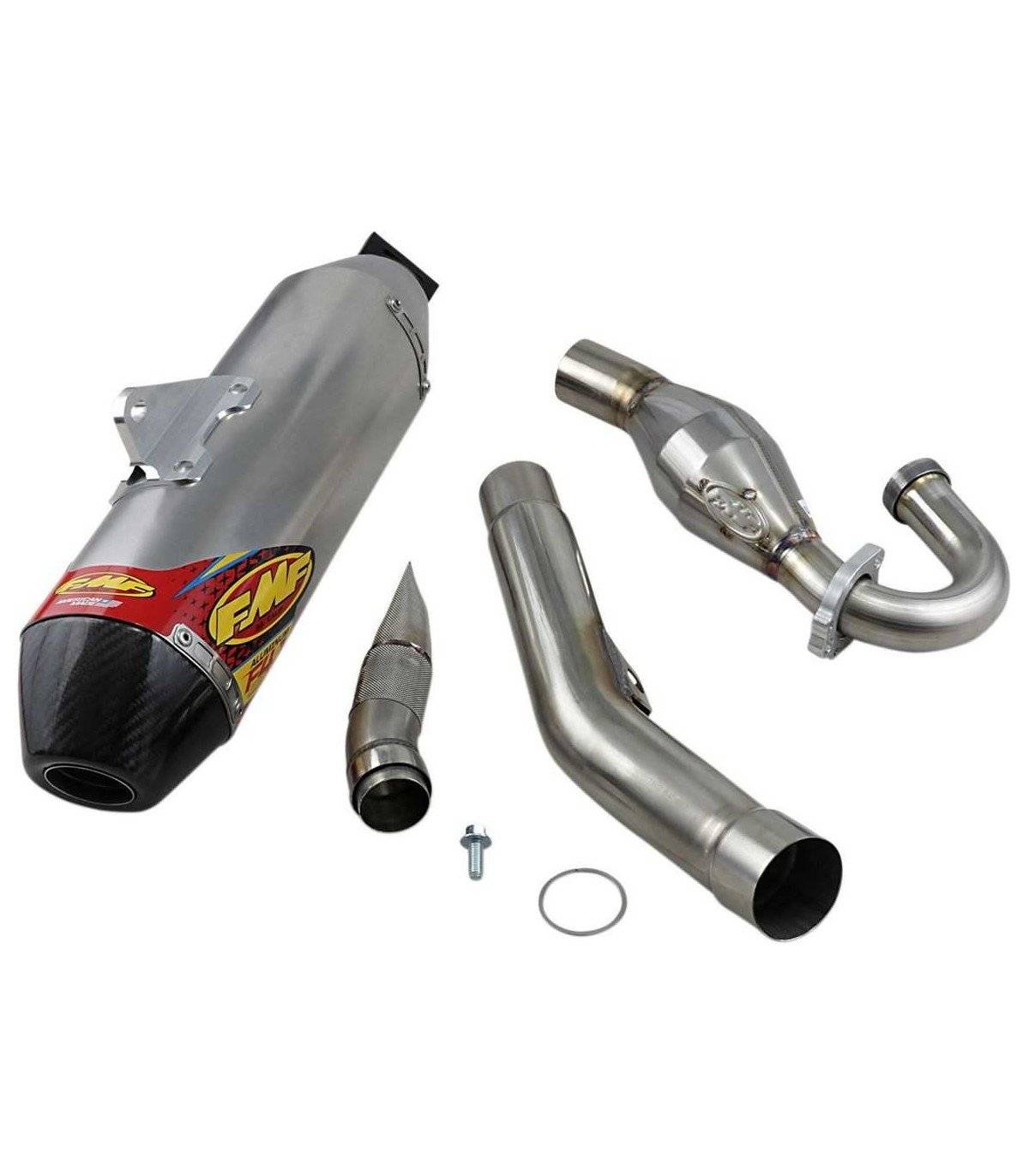 Sistema de escape completo FMF Factory 4.1 RCT + Megabomb. El sistema completo Factory 4.1 RCT es el escape de FMF Racing con mayor rendimiento. Cuenta con el escape Factory 4.1 y el colector Megabomb. Este sistema garantiza un aumento de potencia en toda la gama de revoluciones y es el sistema más ligero disponible.