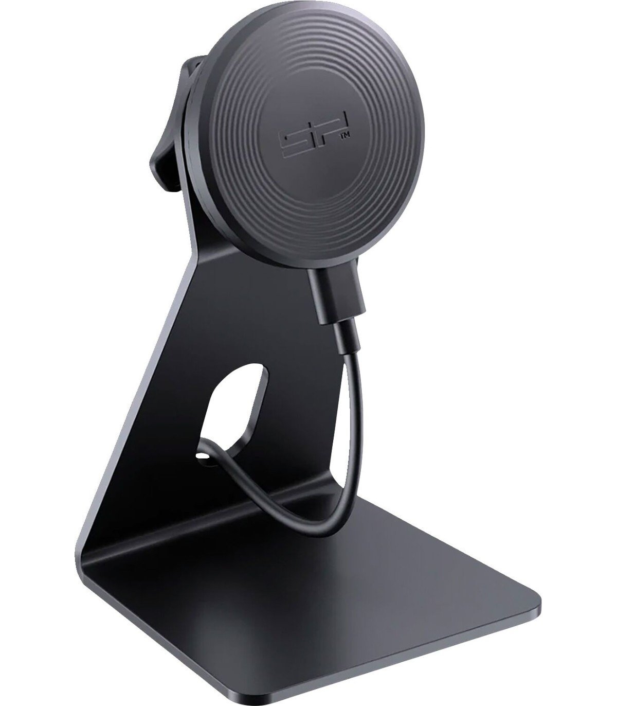 Soporte para teléfono para escritorio o uso domésticoFijación magnética segura de la funda para teléfono SPC+Carga inductiva rápida con 15 vatios de potencia Accesorios compatibles con MagSafe®Incluye cable USB